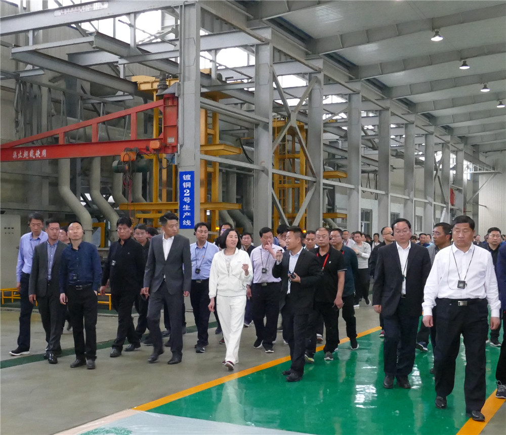 此次觀摩團主要對我公司的表面處理車間電鍍工藝、土壤污染源頭防范、污水處理、危險廢物管理等方面進(jìn)行考察。總經(jīng)理郭釧代表集團公司對各位領(lǐng)導(dǎo)的到來表示熱烈的歡迎,并對公司基本情況、環(huán)保投入等方面做了簡要介紹。公司環(huán)保項目辦主任李宏旺對公司的電鍍工藝、土壤污染源頭防范、污水處理、危險廢物管理做了詳細(xì)的介紹。公司的環(huán)保治理工作得到了觀摩團的一致好評。
