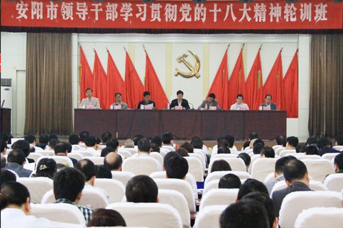 據悉,根據安陽市委統一安排,全市領導干部學習貫徹黨的十八大精神輪訓班于5月6日上午開班,共分5期舉辦,均為脫產學習,每期培訓3天,除安排市委黨校講授、老師授課外,每期還專門安排市委領導進行專題報告,共培訓人數近1700名。(張富強)