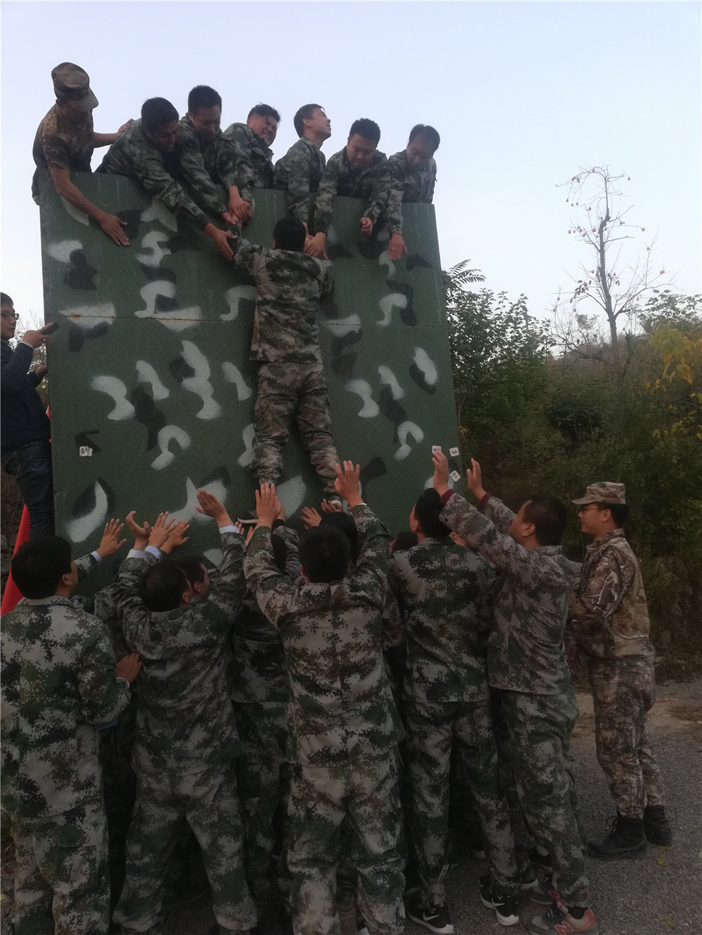 源起于西點軍校的《畢業(yè)墻》項目,是體現(xiàn)團隊凝聚力和合作精神的經(jīng)典訓練項目。在這個項目中,經(jīng)過周密的安排,所有隊員僅用不到8分鐘的時間翻閱了4.2米的高墻,再次見證了團隊的力量。